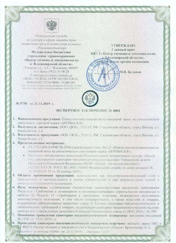 Кроме того, благодаря своей огнестойкости, базальтовая вата Hotrock Блок 70х600х1200 является безопасным материалом для использования в строительстве. Она не горит и не поддерживает горение, что делает ее идеальным выбором для обеспечения пожарной безопасности в зданиях.